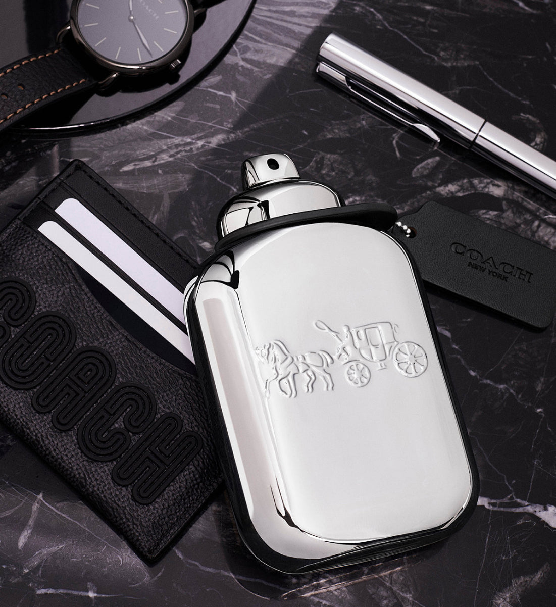 A new fragrance for men, Coach Platinum is a warm, sensual scent inspired by the spirit of the open road. It opens with fresh notes of black pepper oil, pineapple and juniper berries, giving way to distinctive blend of masculine, floral clary sage and geranium with a rich base of refined patchouli, sandalwood and leathery vanilla